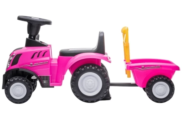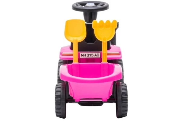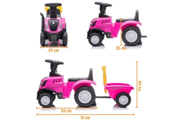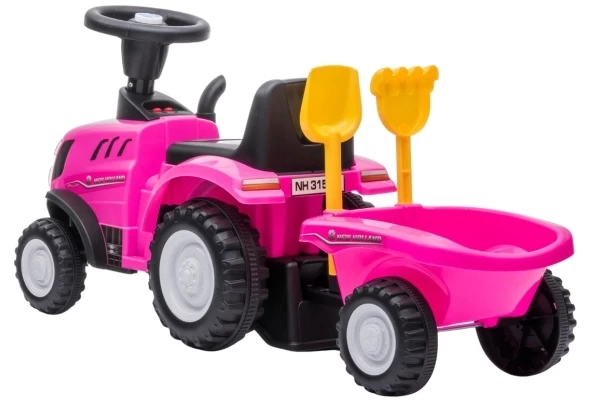 Unter Lizenz von New Holland kann Ihr Kind jetzt eine Mini-Version des T7-Traktors fahren! Der Traktor hat eine Sitzhöhe von 26 cm und wird mit einem passenden Anhänger geliefert. Dieser Anhänger lässt sich leicht abkoppeln und enthält eine Schaufel und einen Rechen. Die vier Räder und der Kippschutz sorgen für zusätzliche Stabilität. Wenn Sie 2 AA-Batterien (nicht im Lieferumfang enthalten) in das Lenkrad einlegen, können die Hupe und die Scheinwerfer verwendet werden. Die maximale Tragkraft beträgt 25 kg.