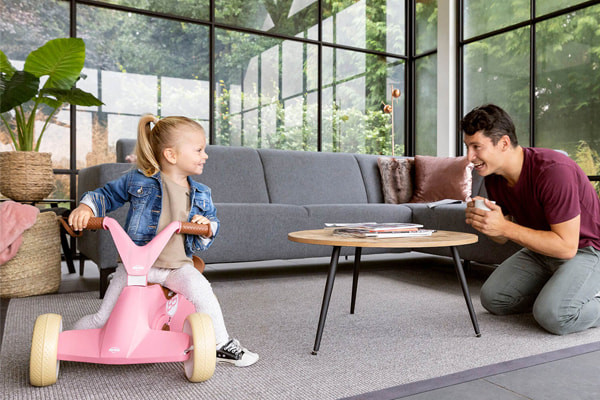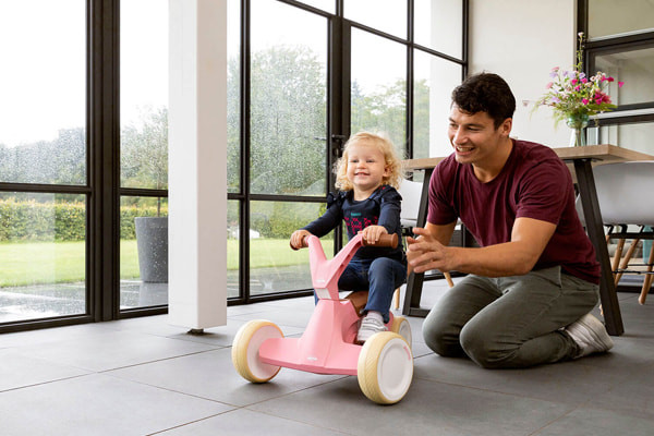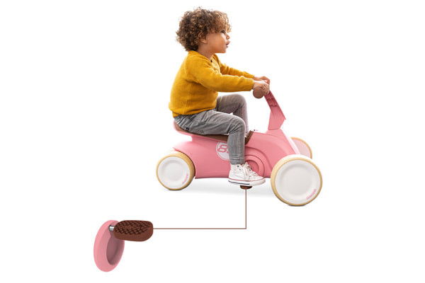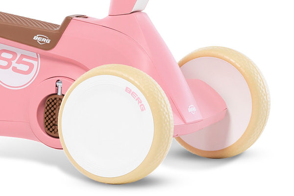 Ein Rutschauto und ein Go-Kart in einem: der GO² von BERG. Diese Retro Pink-Variante ist für Kinder von 10 bis 30 Monaten oder mit Körpergröße 70 bis 100 cm geeignet. Der GO² ist mit einem einzigartigen Pedalsystem ausgestattet. Laufen lernen? Klappen Sie die Pedale. Treten lernen? Klappen Sie die Pedale aus. Ein einfaches und dennoch effektives System! Dank des langgestreckten Sattels kann Ihr Kind während des Wachstums immer weiter zurücklehnen. Die Räder sind flüsterleise.