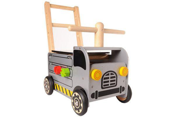Wunderschöne graue Maus von I'm Toy. Dieser Lauflernwagen hat gummierte Räder. Er hinterlässt keine Kratzer auf Holz Fußböden und eignet sich für drinnen und draußen. Inklusive 6 Bauklötzen, die in die Formen an der Seite des interaktiven Rutschers passen. Ein interaktives Spielauto für Kinder ab 1 Jahr.